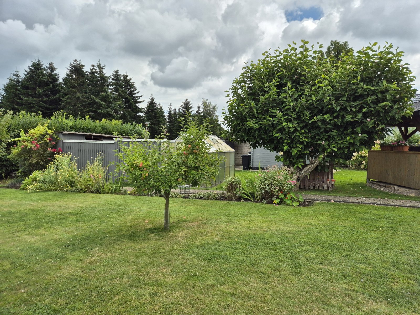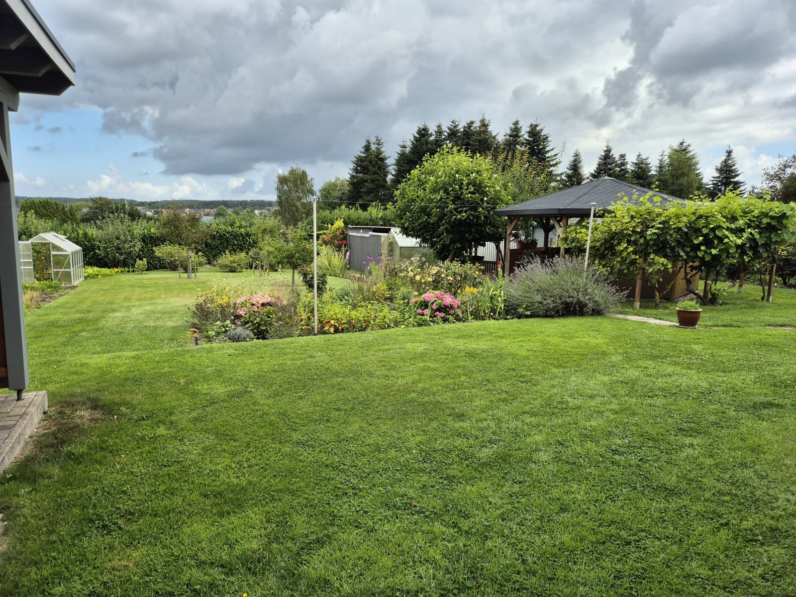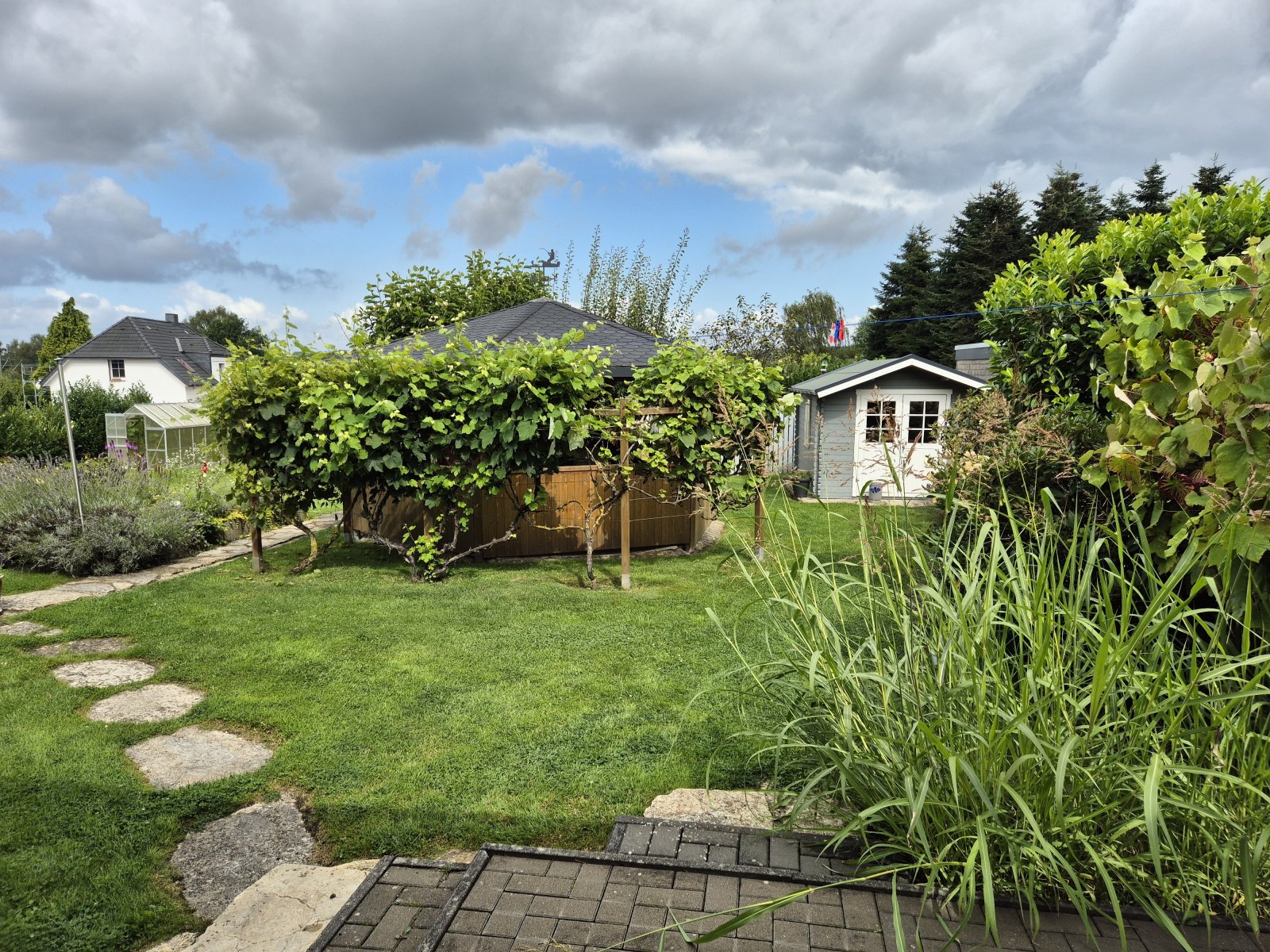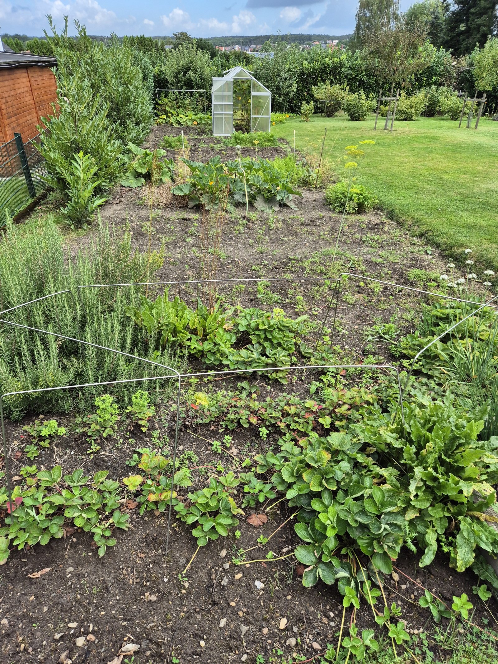 Der Garten wurde mit viel Liebe angelegt. Hier finden Sie unter anderem einen Brunnen, einen Pavillon, mehrere Gewächshäuser, ein Gartenhaus sowie kleinere Nebengebäude, die als Lagerraum dienen. Es werden Zwiebeln, Kartoffeln, Karotten, Zucchini, Gurken, Tomaten, Rote Beete, Kürbis, Dill, Petersilie, Schnittlauch und Rosmarin angebaut. Außerdem gibt es 3 Apfelbäume, Mirabellen, einen Kirschbaum, Johannisbeeren, Heidelbeeren sowie Himbeeren.
