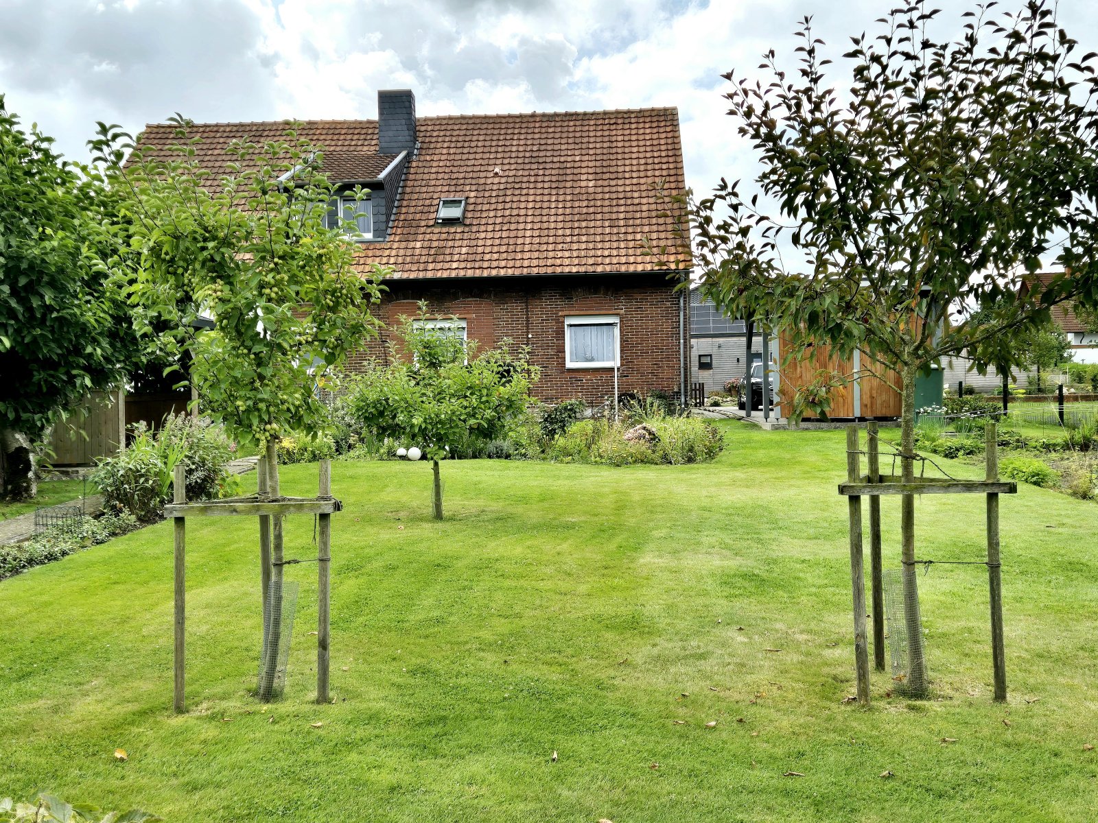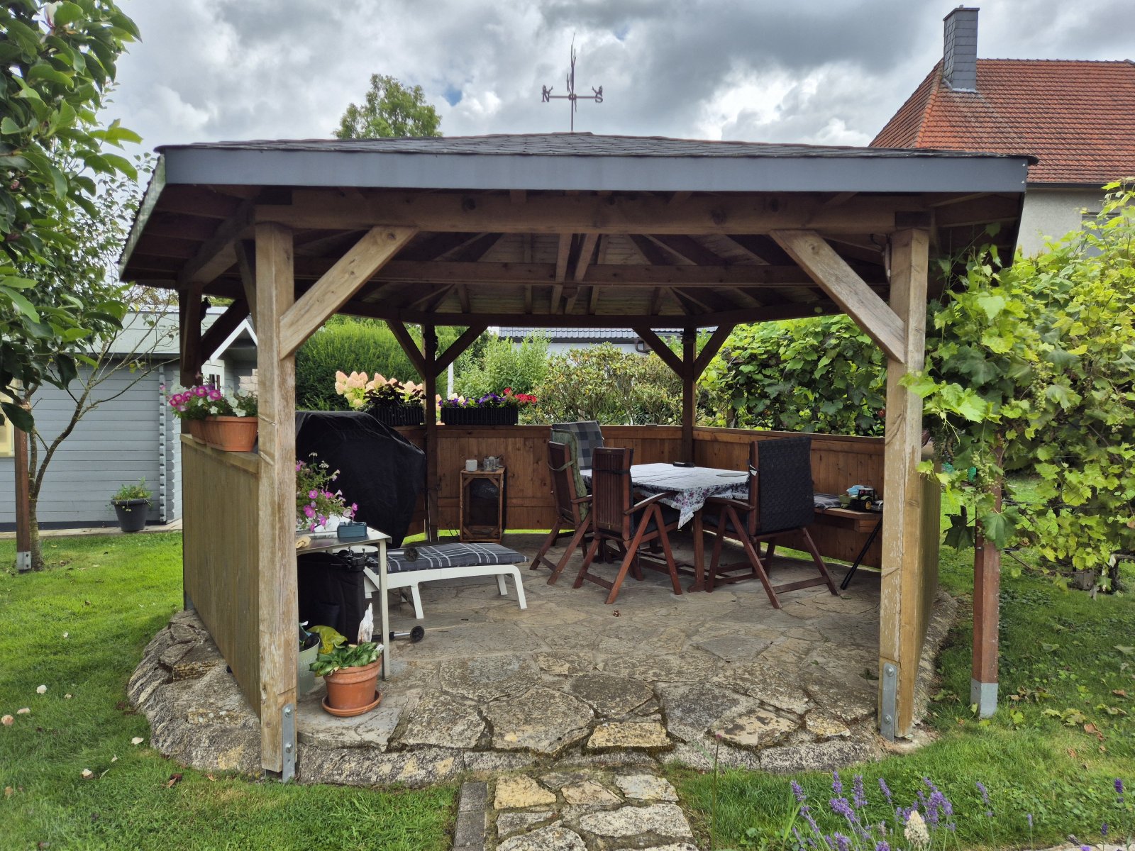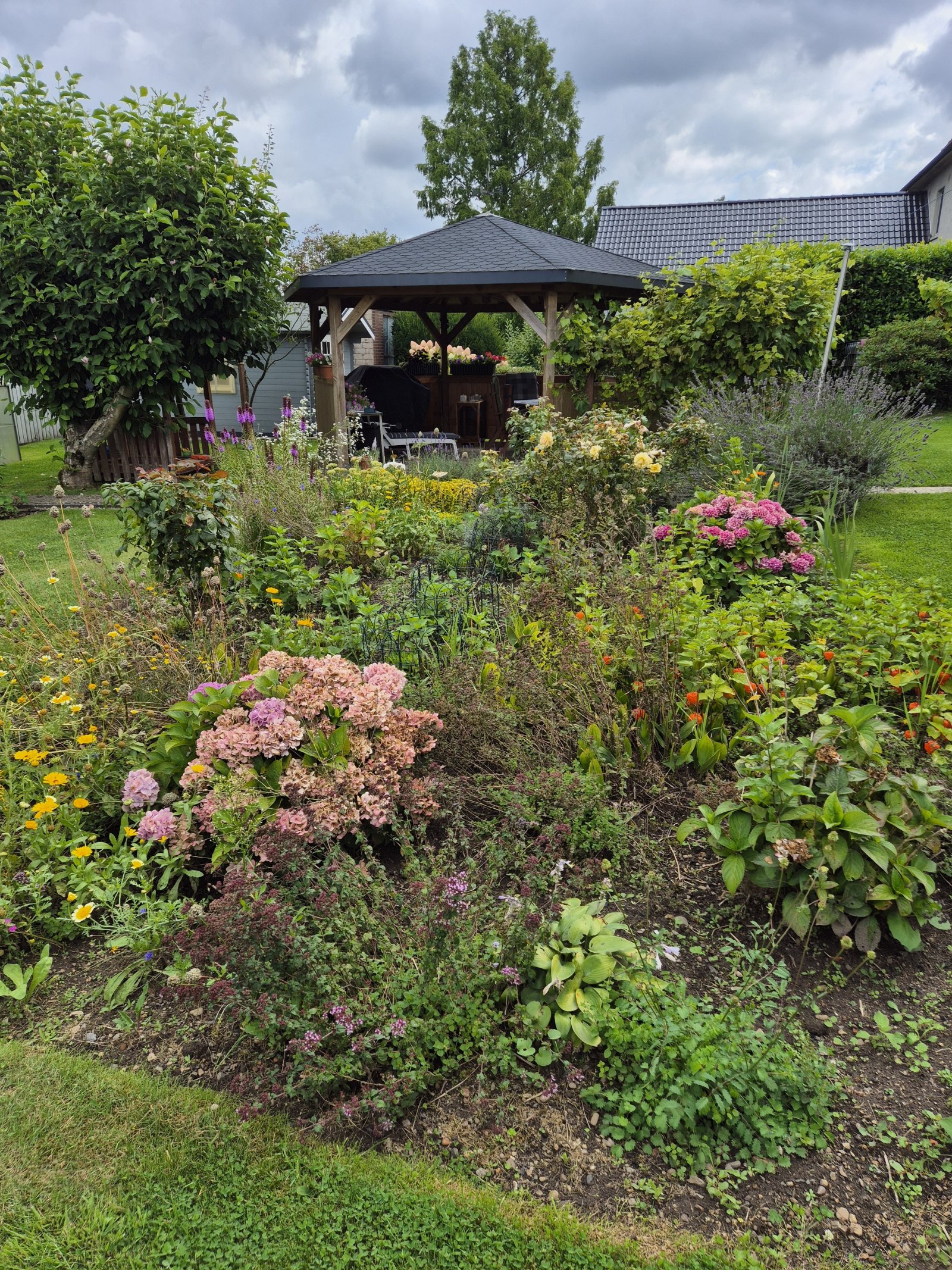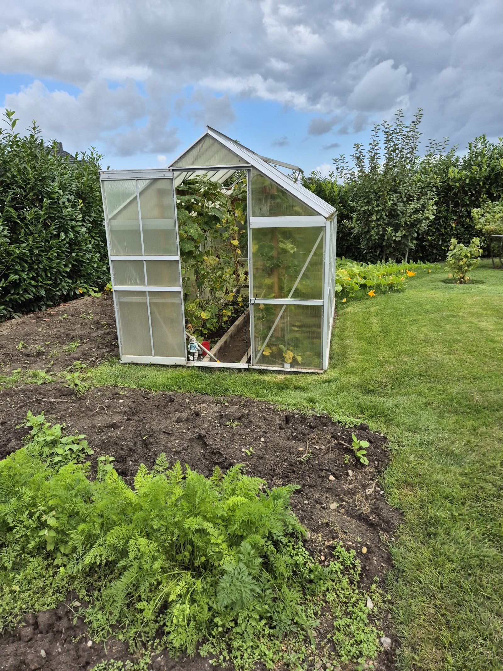 Der Garten wurde mit viel Liebe angelegt. Hier finden Sie unter anderem einen Brunnen, einen Pavillon, mehrere Gewächshäuser, ein Gartenhaus sowie kleinere Nebengebäude, die als Lagerraum dienen. Es werden Zwiebeln, Kartoffeln, Karotten, Zucchini, Gurken, Tomaten, Rote Beete, Kürbis, Dill, Petersilie, Schnittlauch und Rosmarin angebaut. Außerdem gibt es 3 Apfelbäume, Mirabellen, einen Kirschbaum, Johannisbeeren, Heidelbeeren sowie Himbeeren.
